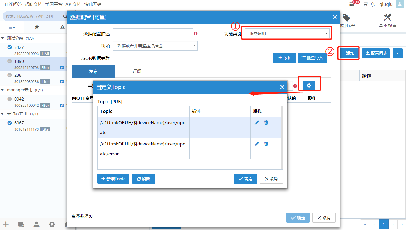 2.选择FBox,点击【数据转发】>【MQTT】,点击