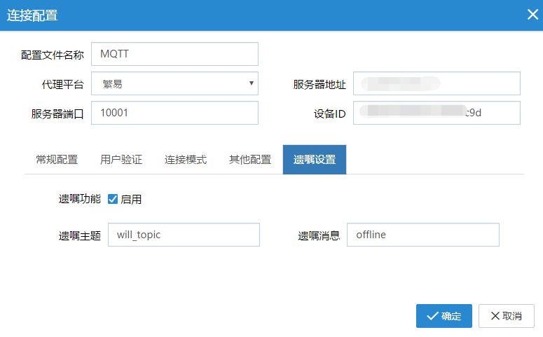1.连接配置(对接的MQTT服务器参数和MQTT协议参数等)