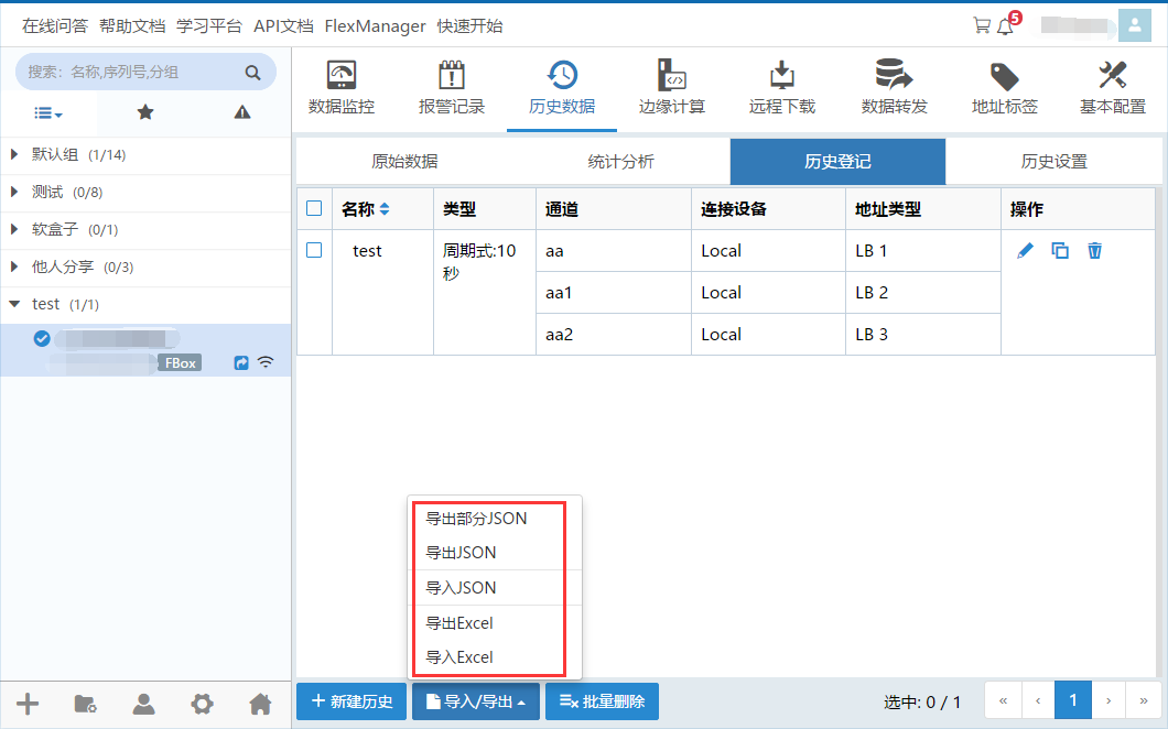 | 导出JSON | 勾选记录,点击【导入/导出】>【导出JSON】,将勾选的记录以JSON文件导出至本地。 |